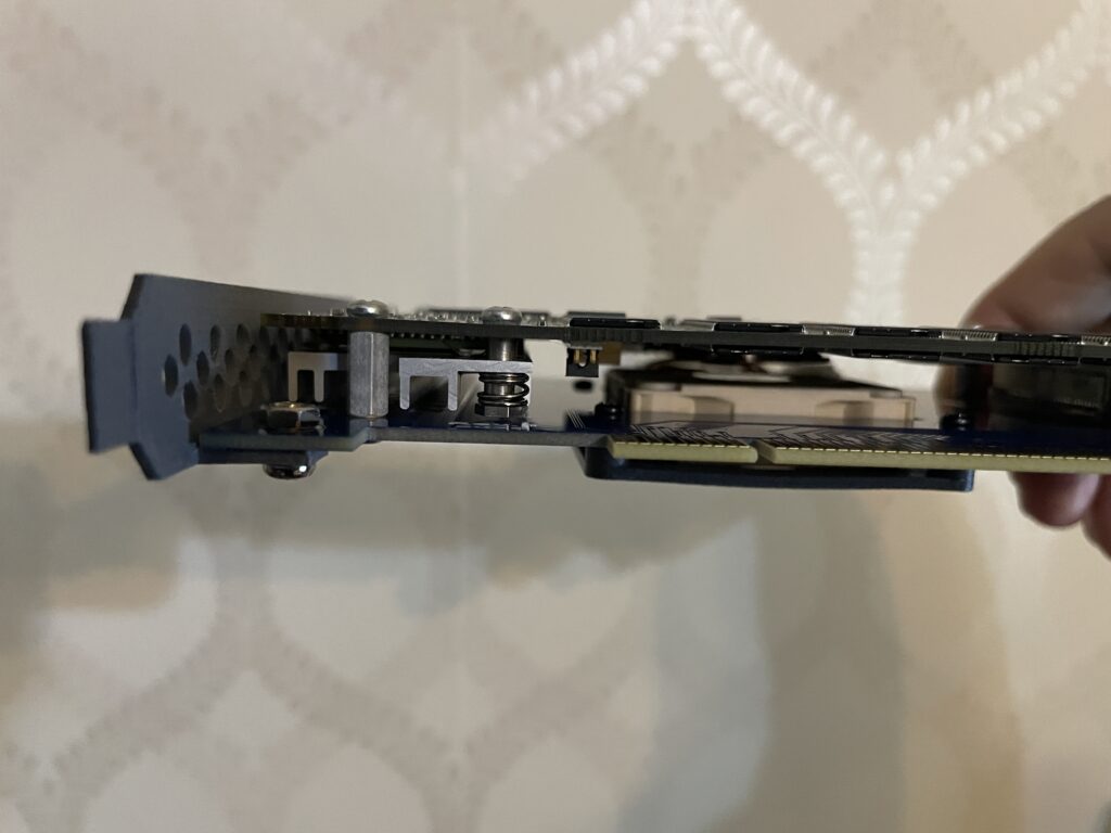 A closeup of the card stabilizer. It is not an optimal setup if cards go in and out constantly because you would have to remove it. But this setup is pretty much done so I won’t really touch the Zorro cards anymore.
