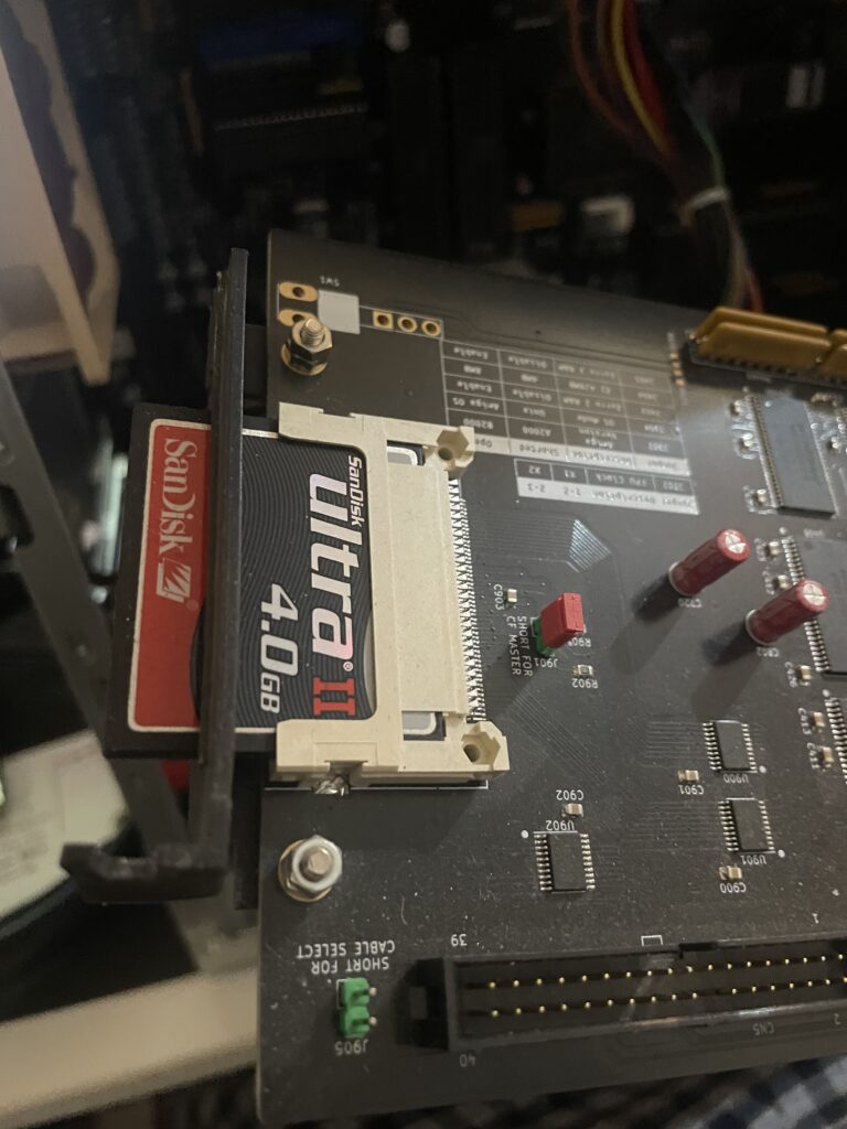 I managed to fit both the ISA Solas carrier and the ZuluSCSI that is fitted to the 4091, there is not even a mm space left between them. Before I had the ZuluSCSI mounted on the case back, but it looks much better fitted directly to the 4091 card. Since getting the 4091 working with my 100MHz BFG 9060 I decided to keep it in this system.