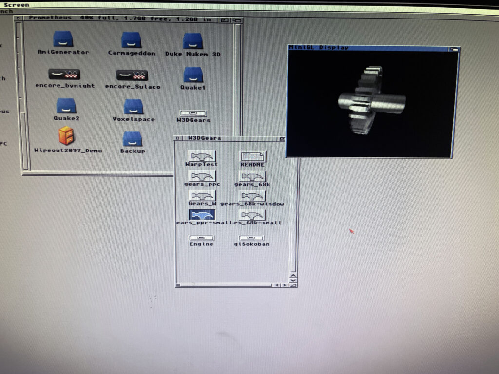 This is just a demo to check that Warp3D and PPC is working. Imagine the gear spinning around very smoothly.