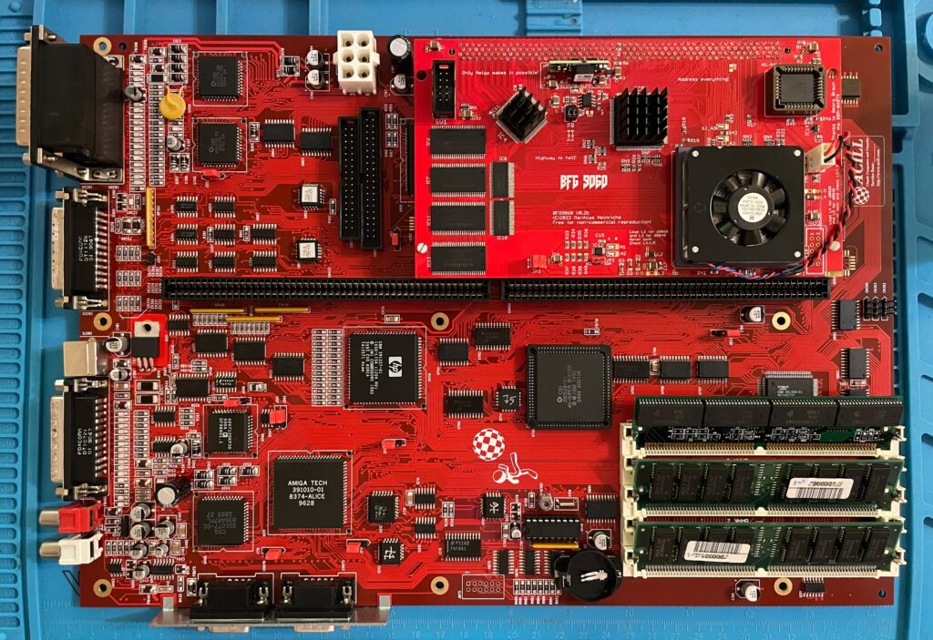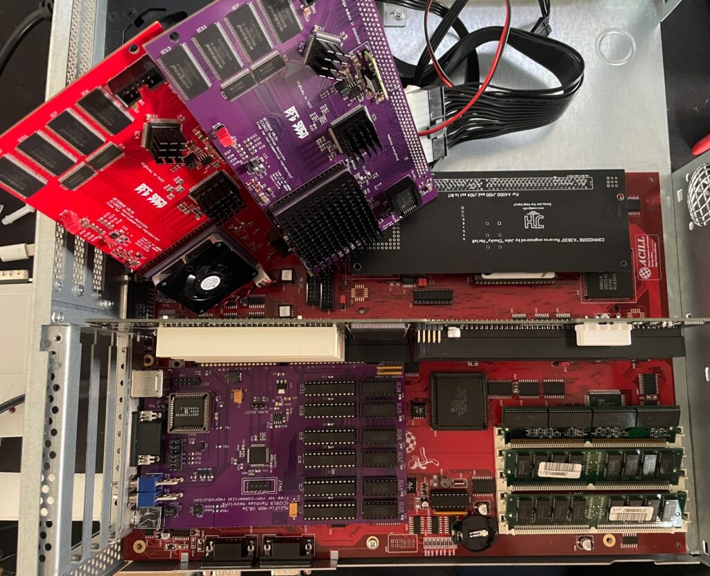 Here is my test setup: Acill A4000D motherboard with ReA3630 and two BFG9060 cards including Firestorm PCI daughterboard, Multifix-AGA and a replica A4000D case