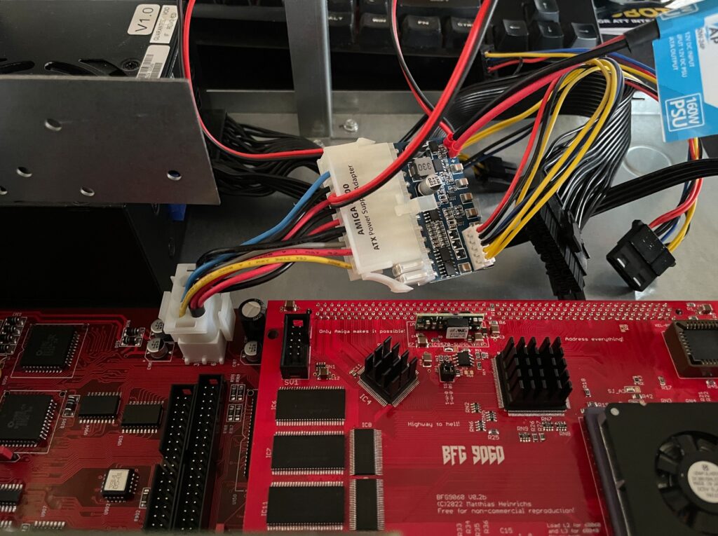 Unfortunately it did not start with the SFX PSU and 060 card even if I loaded the machine with all Zorro slots filled, including adding an old 3.5″ harddrive.