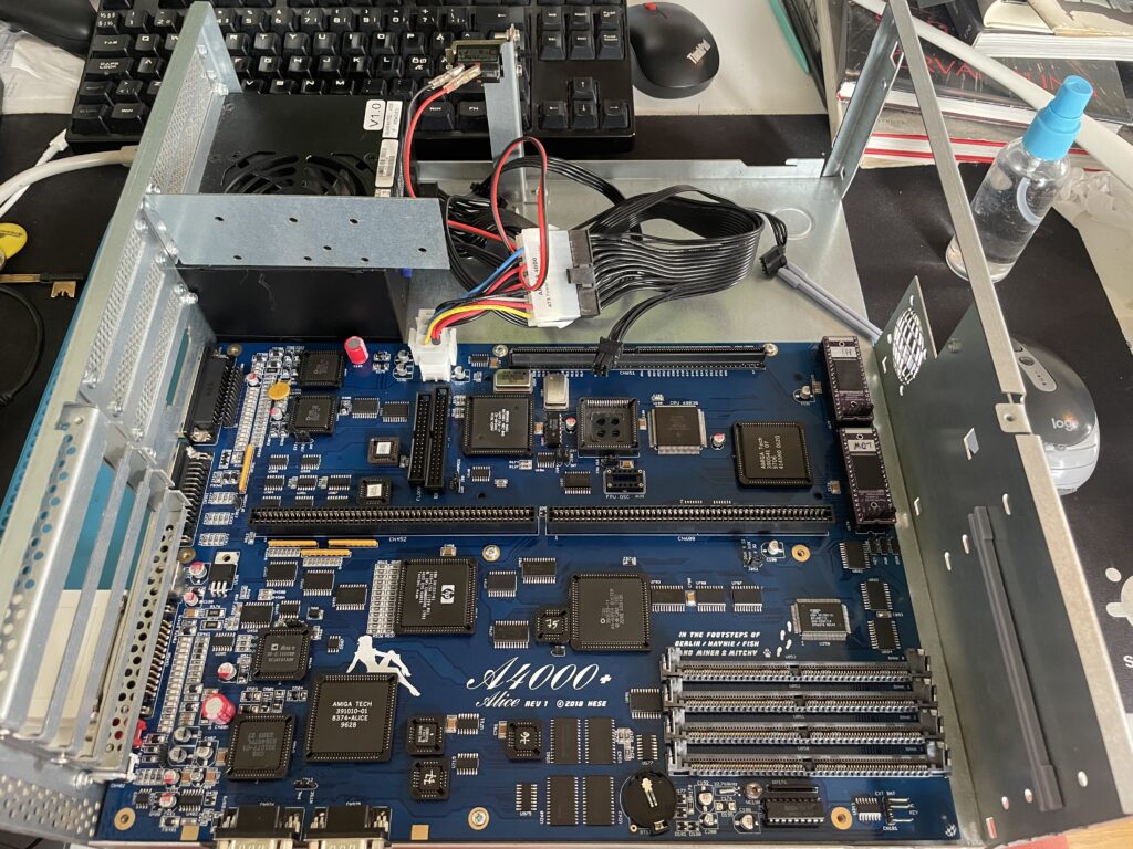 Here is the A4000+ Alice motherboard during the testing phase inside the A4000D case