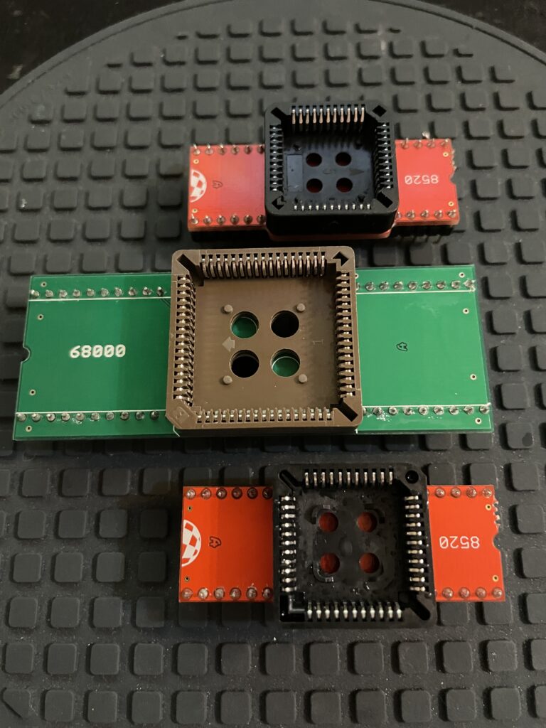 I have had these DIP to PLCC adapter kits in my stash for quite a while, today I finally gave in and built them. They are usefull if you want to use PLCC Amiga CIA chips instead of DIP CIA chips and for using an PLCC Motorola 68000 CPU instead of a more common DIP 68000.